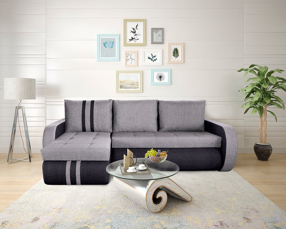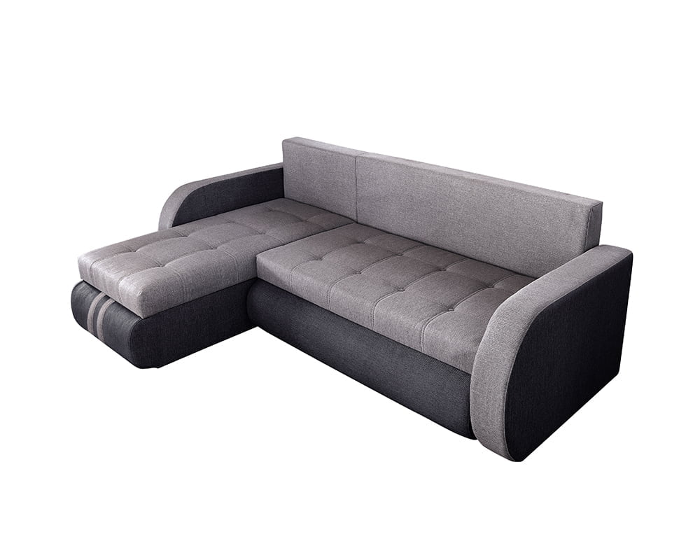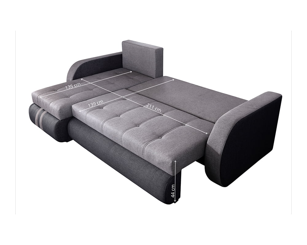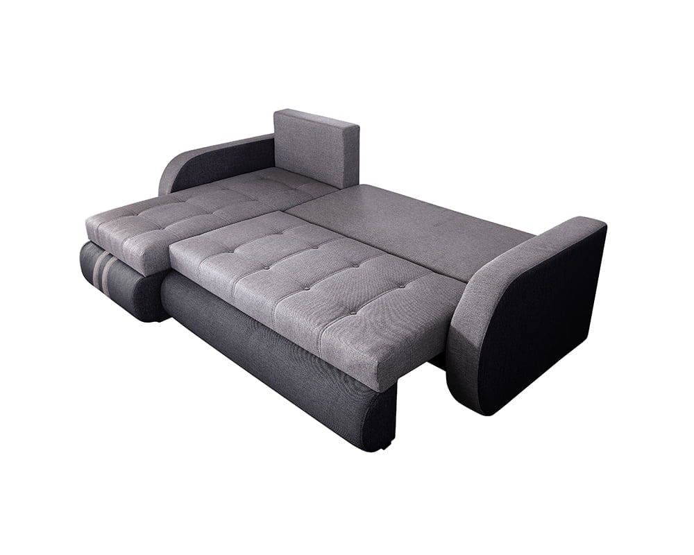 Bedora Genoa Duo Kihúzható Sarokülő 243x141x81 cm, tárolóládás, megfordítható, textil, fekete, szürke
