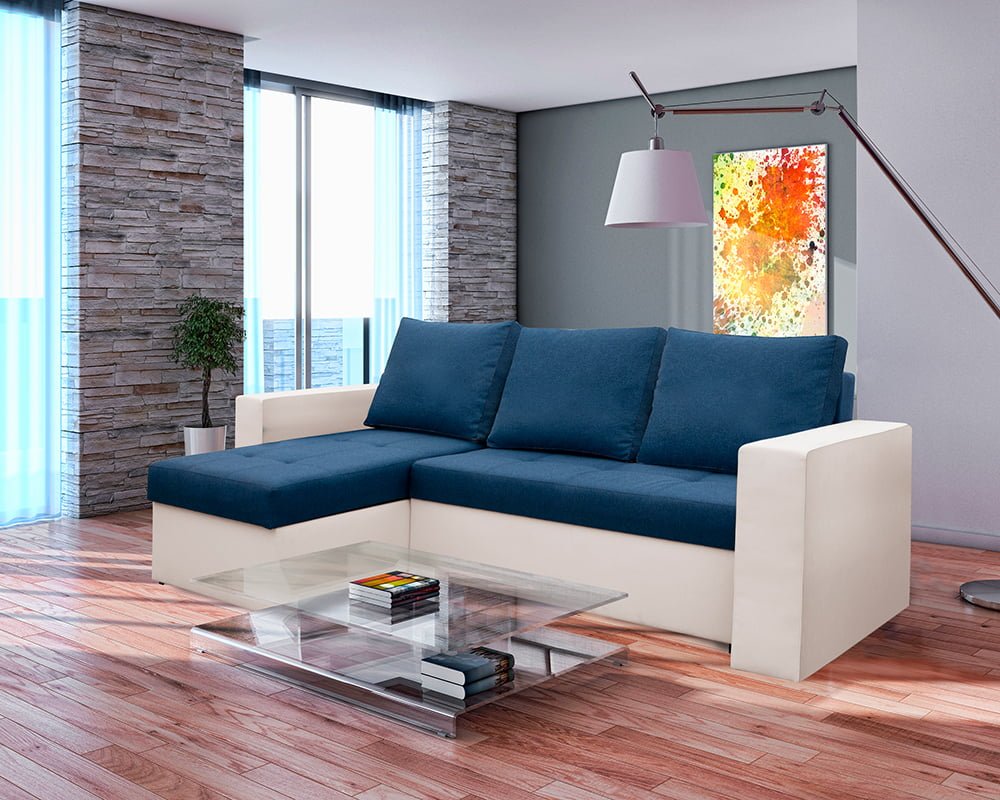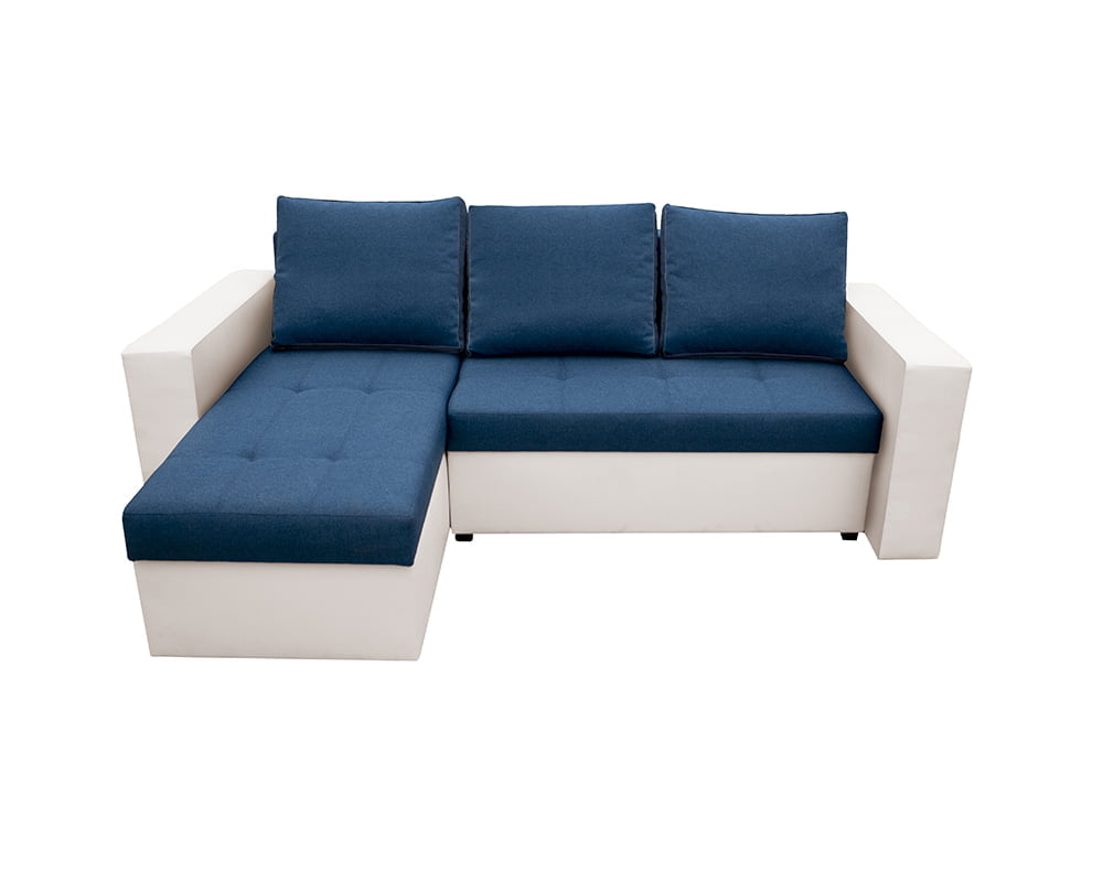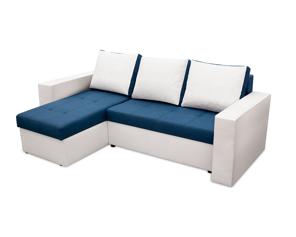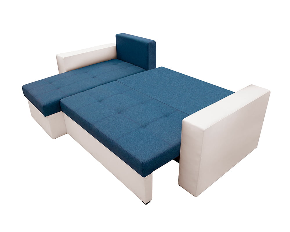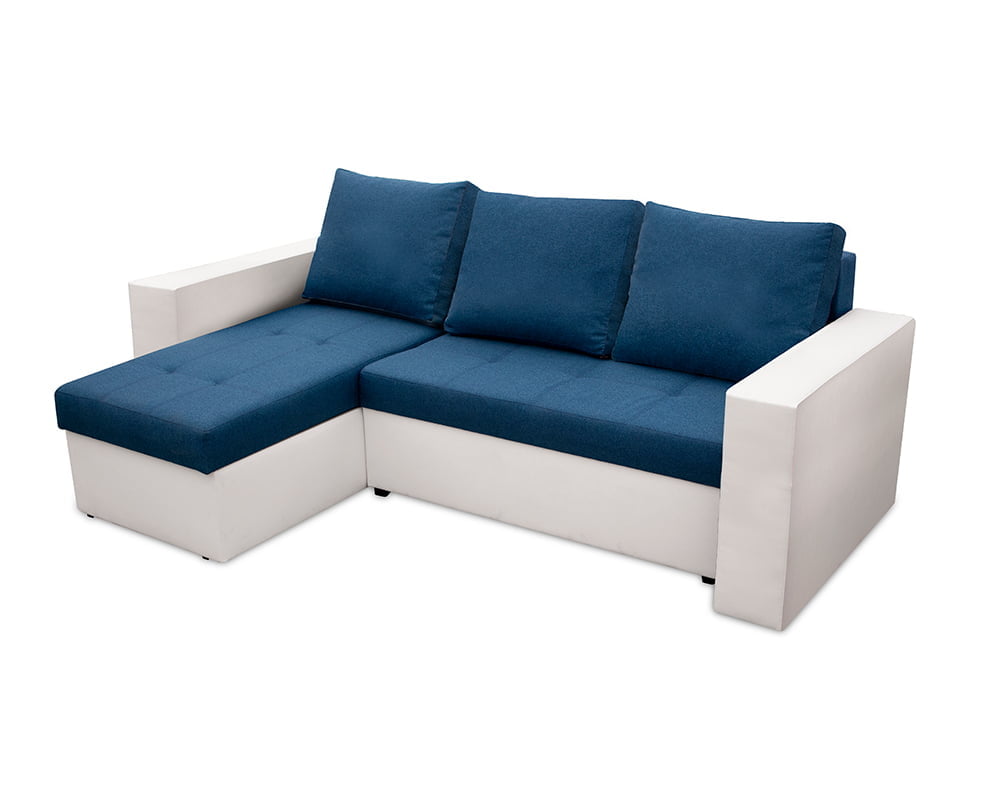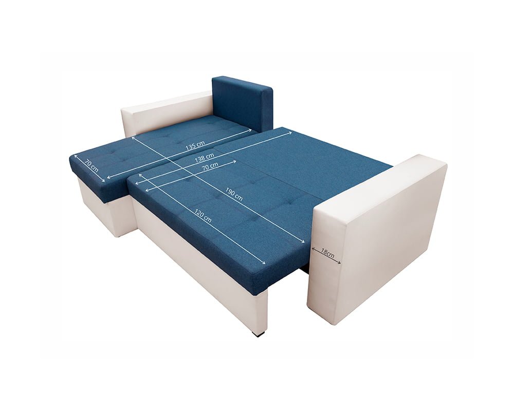 Bedora Toledo Kihúzható Sarokülő 226x145x79 cm, tárolóládás, megfordítható, textil, műbőr, fehér, kék