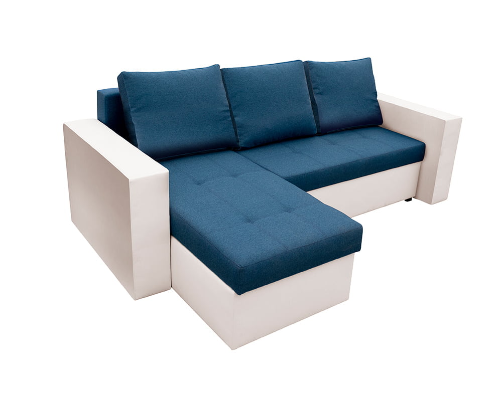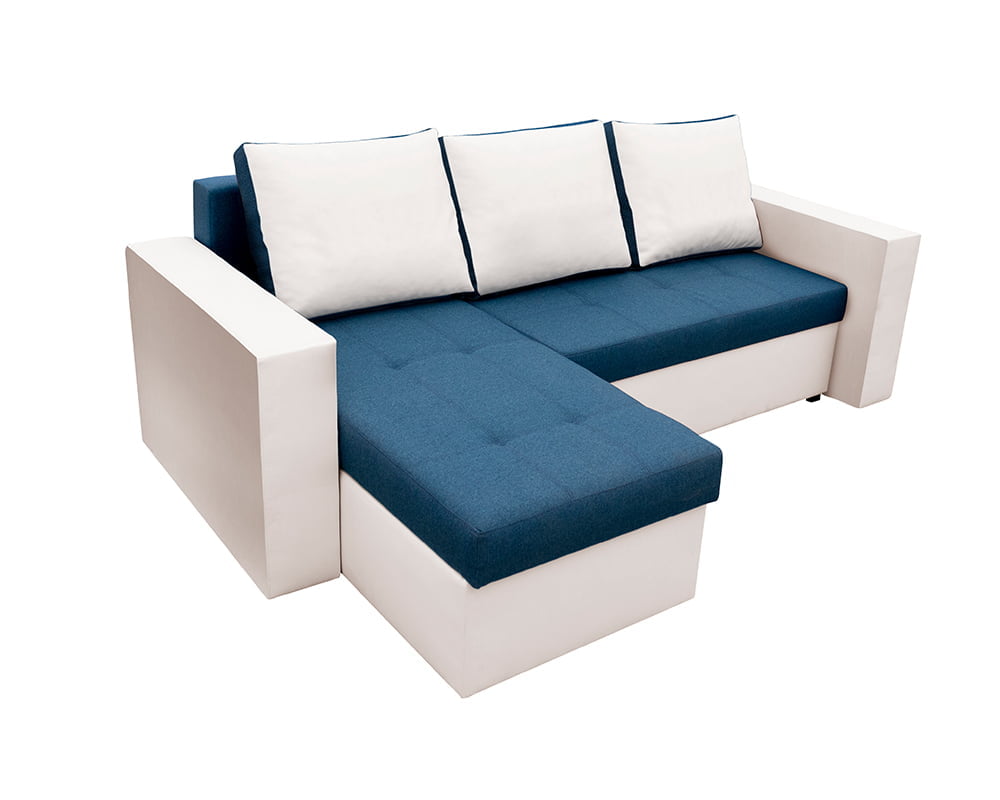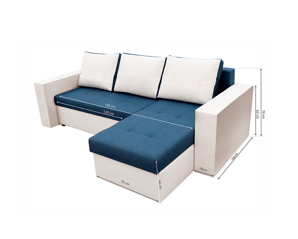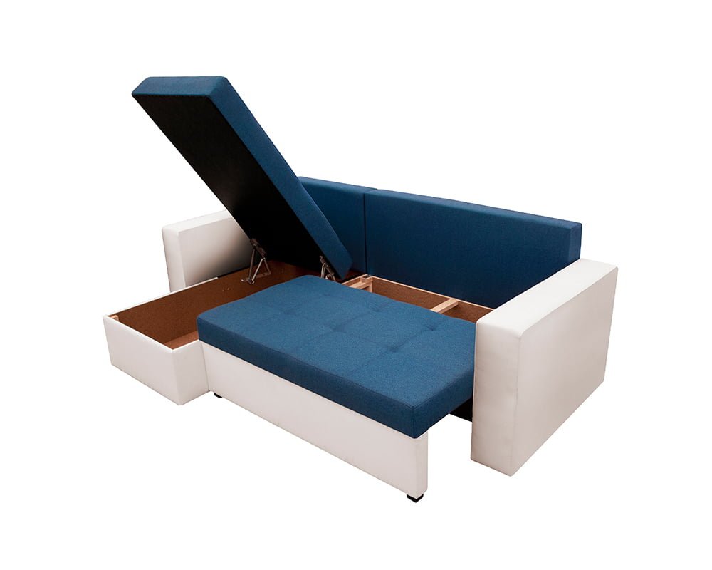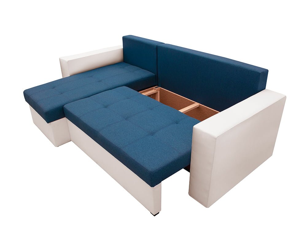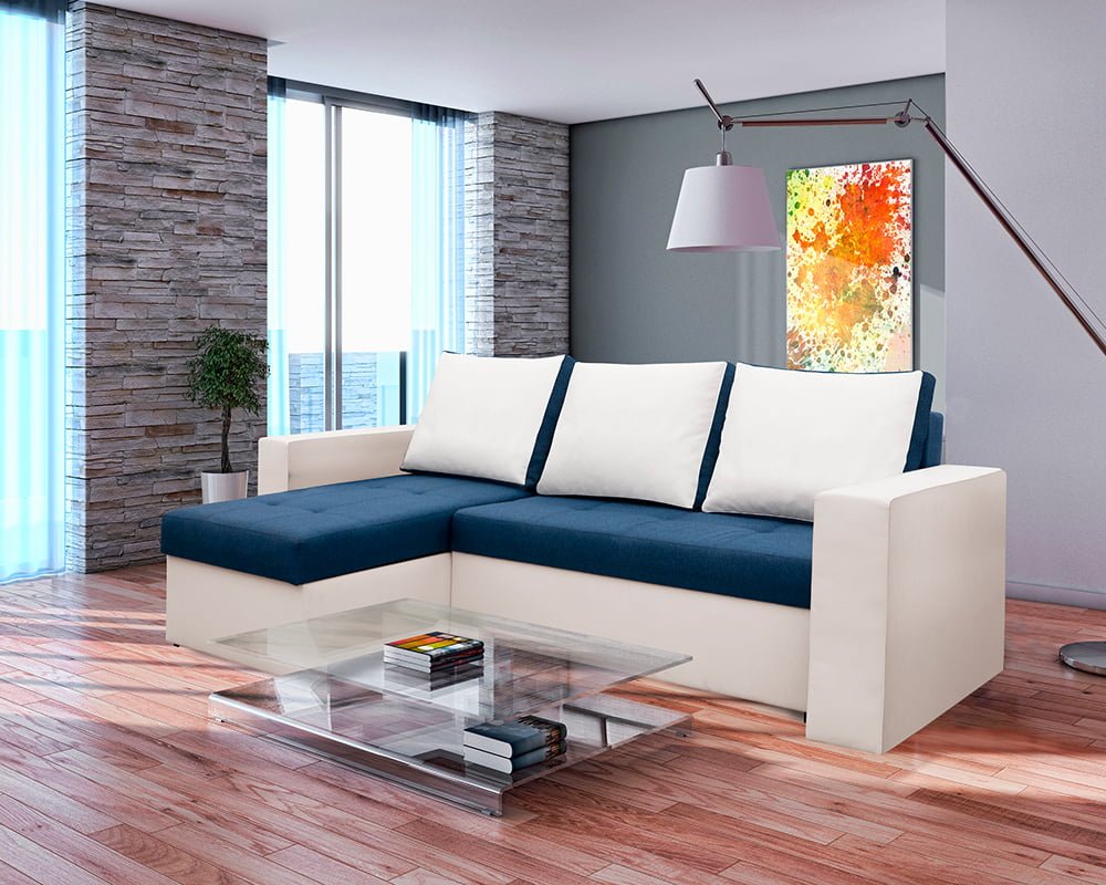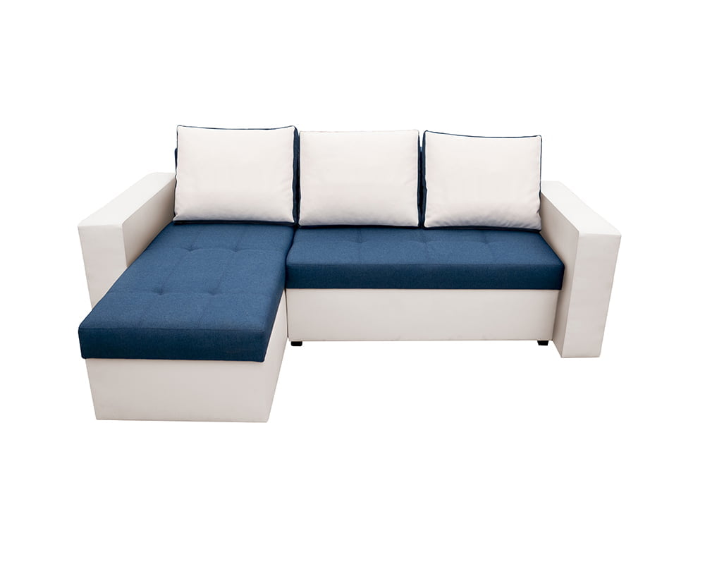 Bedora Toledo Kihúzható Sarokülő 226x145x79 cm, tárolóládás, megfordítható, textil, műbőr, fehér, kék